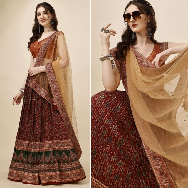 New designer tussar silk ajrakh printed lehenga