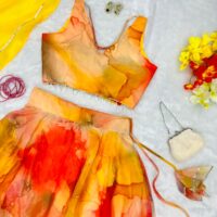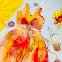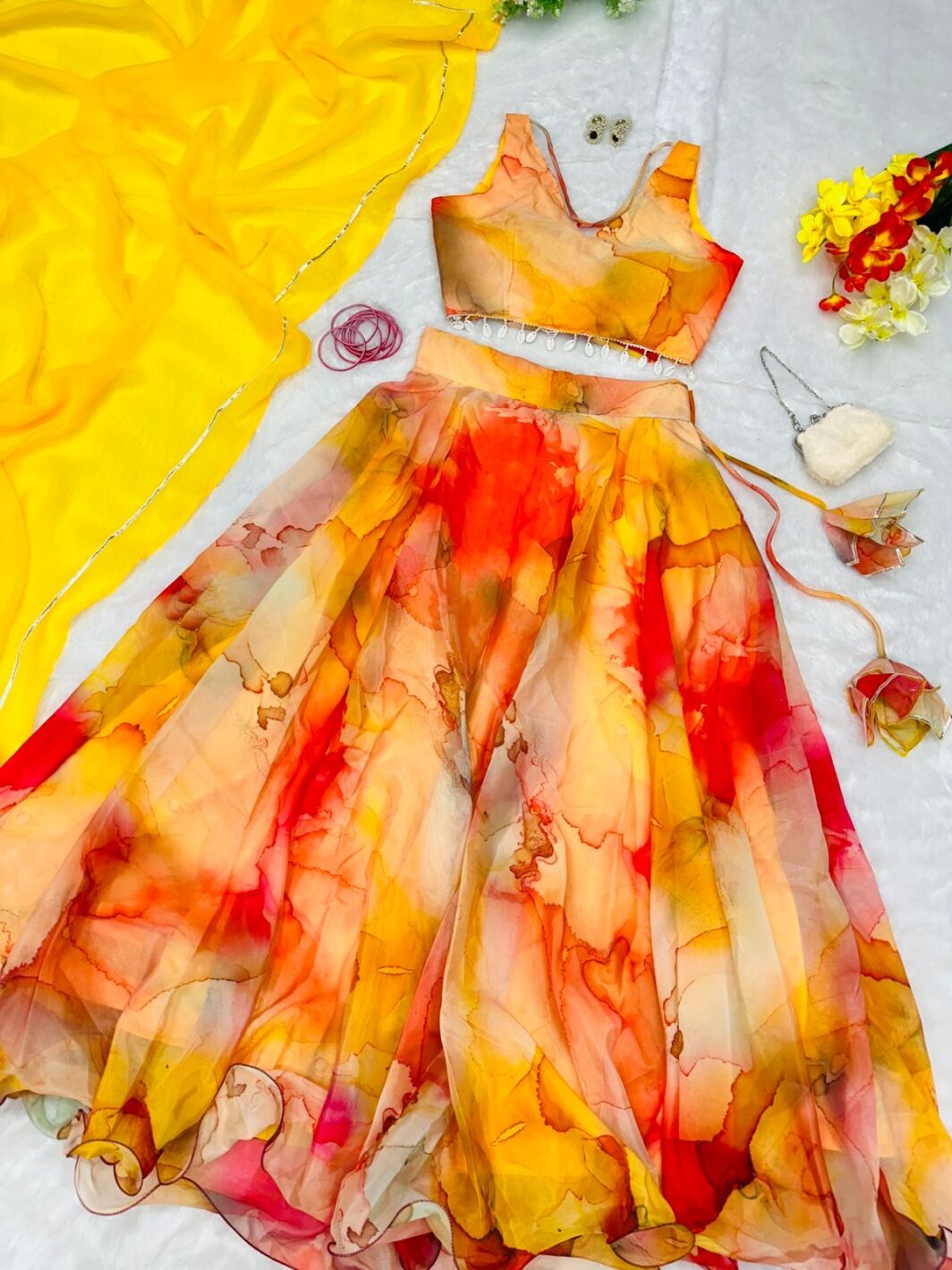 New Bollywood wardrobe team ready made jimmy organza silk digital printed lehenga