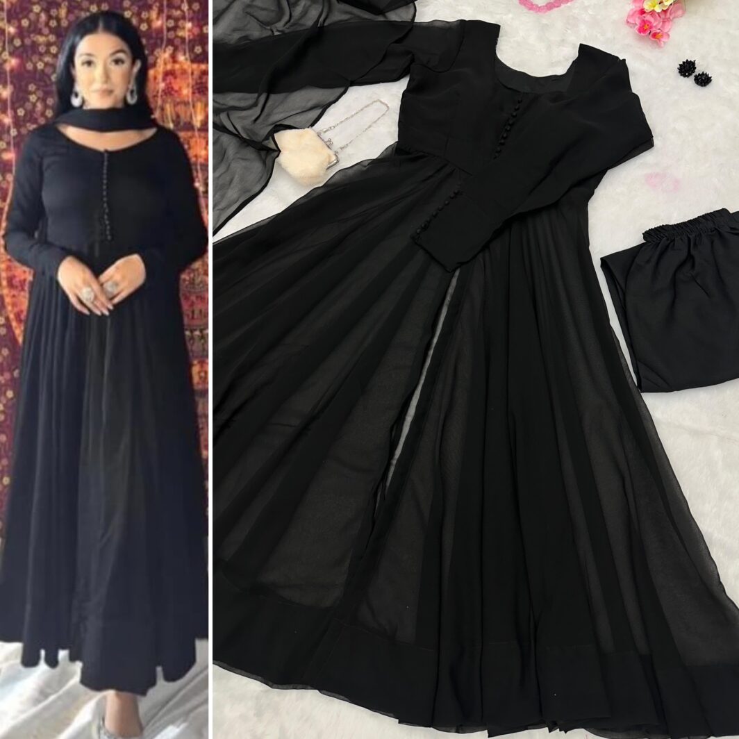 New Bollywood wardrobe team ready made Georgette silk anarkali suit with middle slit