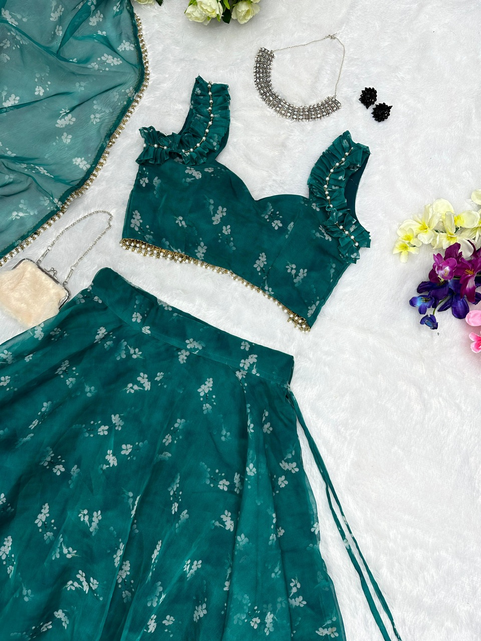 New Bollywood wardrobe team ready made organza silk digital printed lehenga