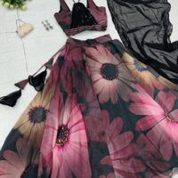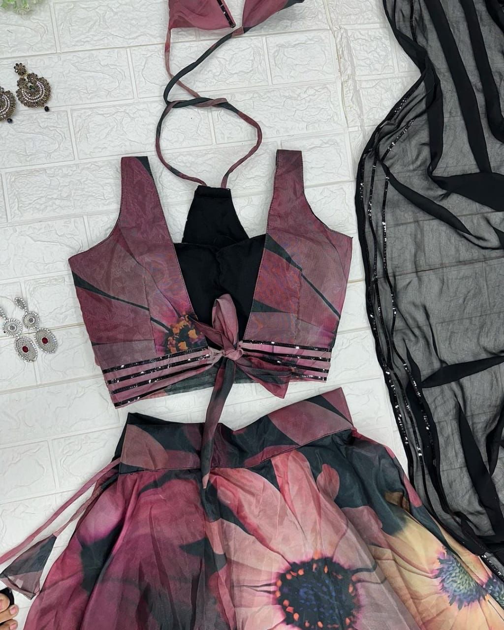 New Bollywood wardrobe team ready made jimmy organza silk digital printed lehenga