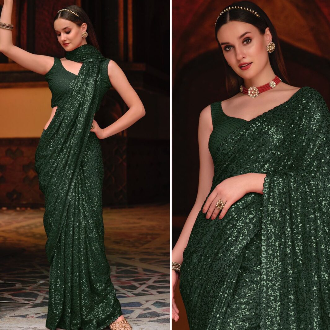 New designer georgette saree with sequin embroidery – blouse comes embroidered unstitched
