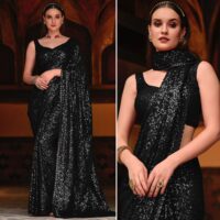 New designer georgette saree with sequin embroidery – blouse comes embroidered unstitched