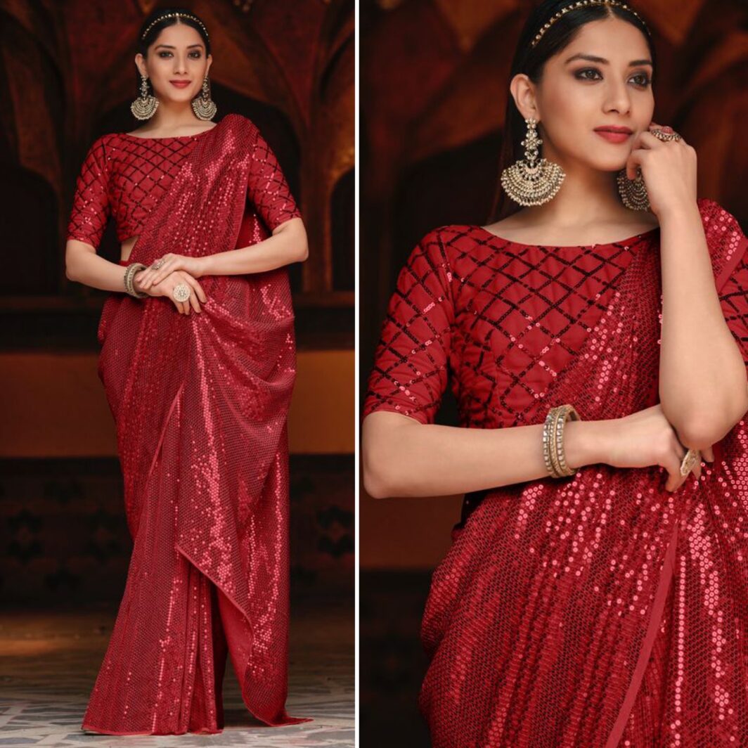 New designer georgette saree with sequin embroidery – blouse comes embroidered unstitched