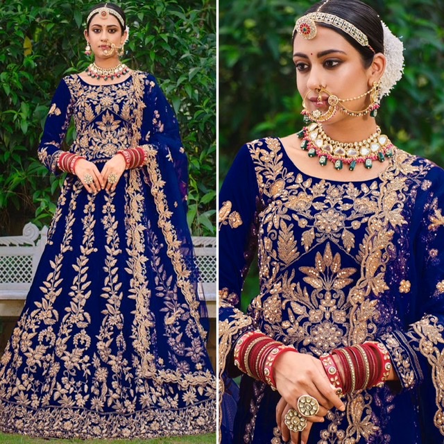 New designer velvet lehenga with stone and thread work