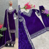 New Bollywood wardrobe team ready made viscose velvet suit with moti hand work