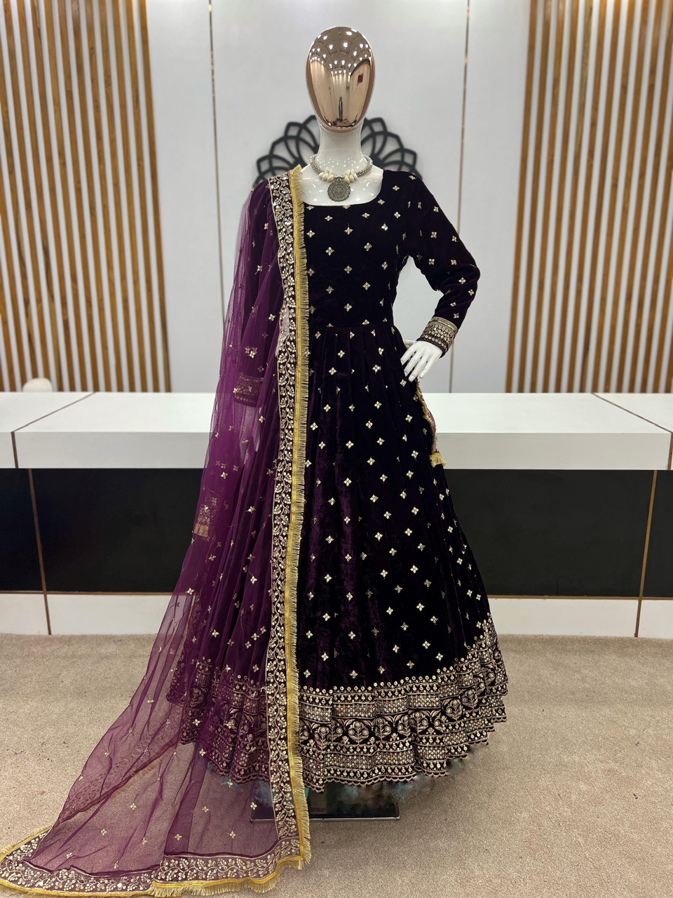 New Bollywood wardrobe team viscose velvet gown with sequin embroidery work