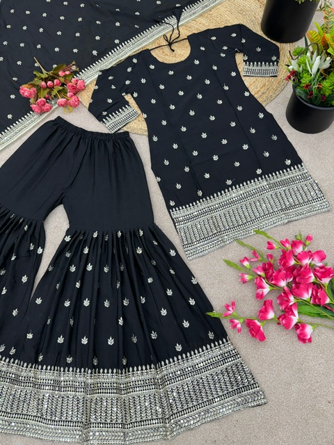 New Bollywood wardrobe team ready to wear chinon silk sharara suit with sequin embroidery work