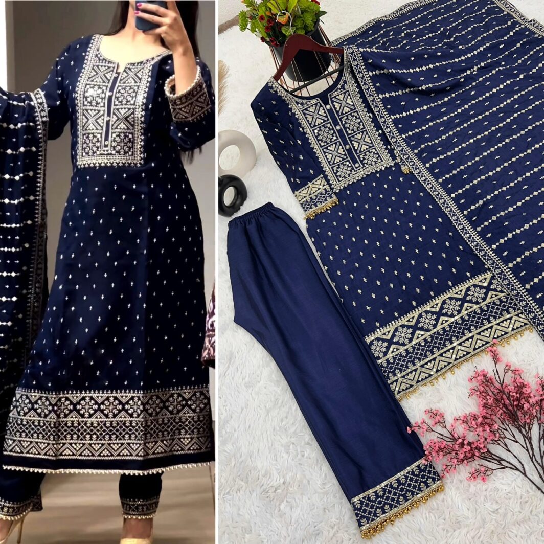New Bollywood wardrobe team ready made chinon silk suit with sequin work