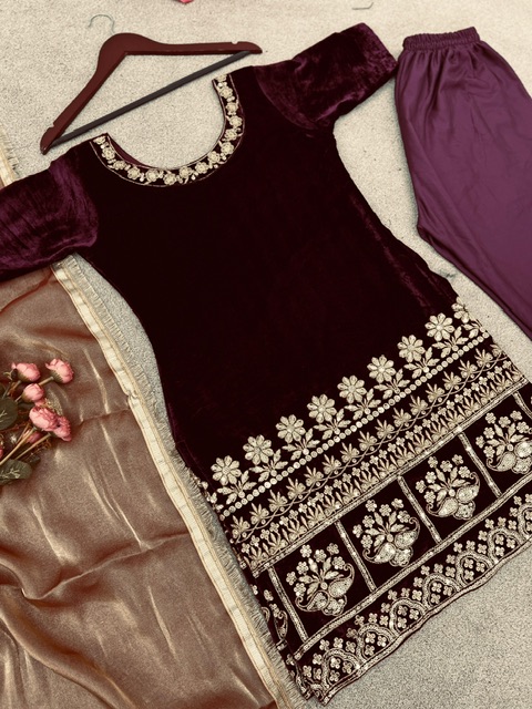 New Bollywood wardrobe team made ready made viscose velvet suit with sequin work