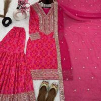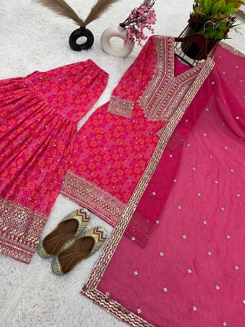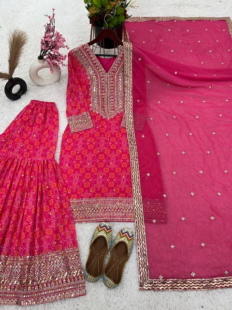 New Bollywood wardrobe team ready made georgette bandhani gharara suit with sequin work