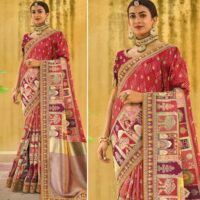 New premium range dola silk wedding events saree with embroidery work