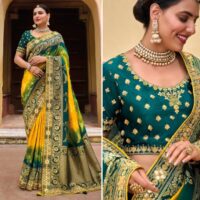 New premium range dola silk wedding events saree with embroidery work