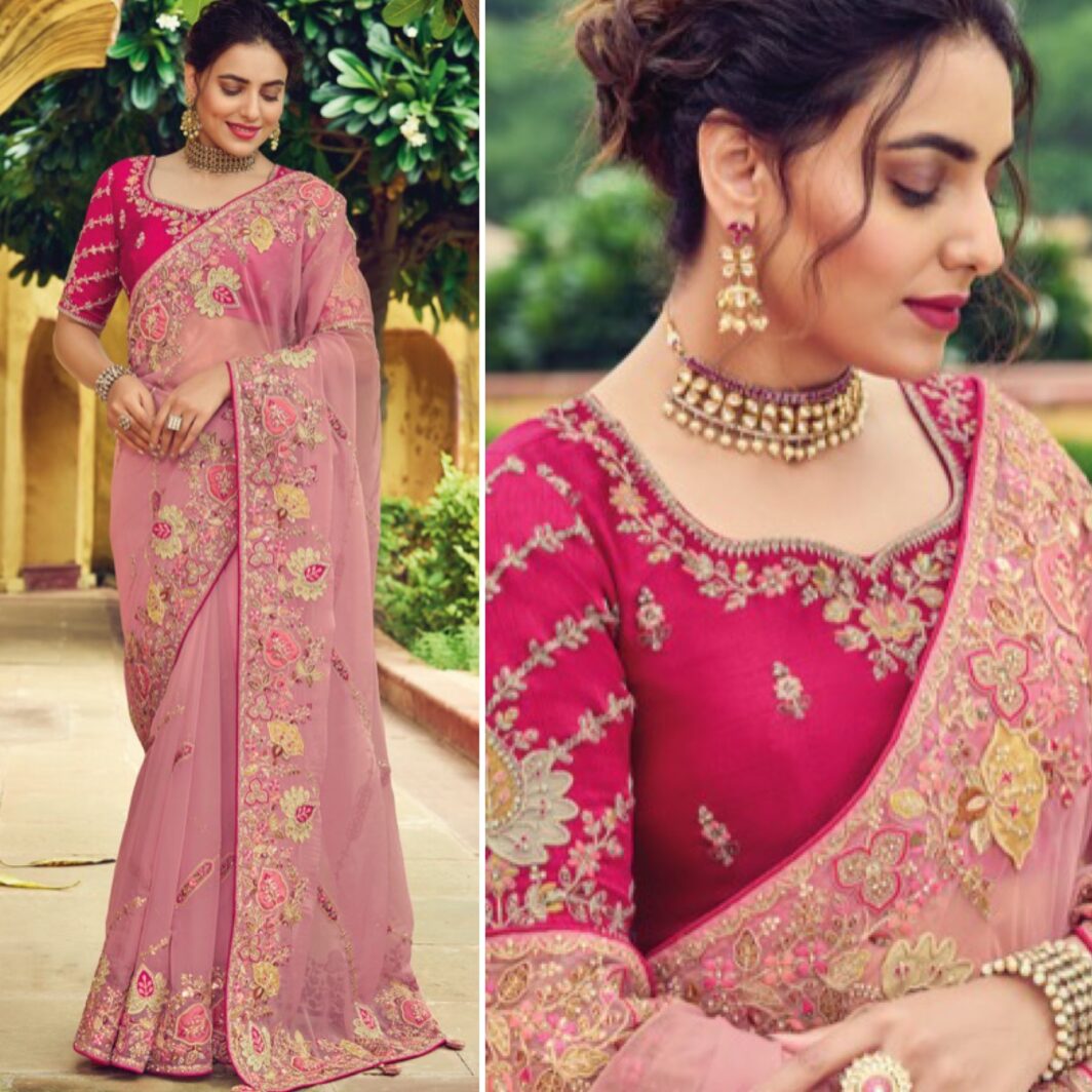 New premium range silk wedding events saree with embroidery work