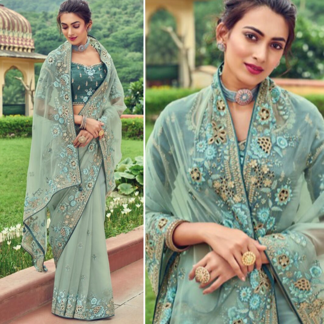 New premium range silk wedding events saree with embroidery work