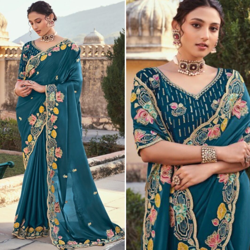 New premium range silk wedding events saree with embroidery work