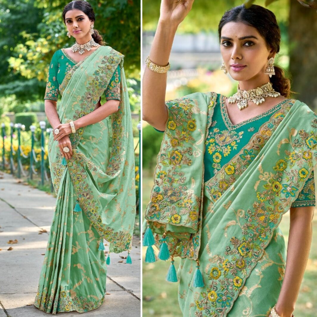 New designer silk saree with embroidery work