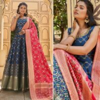 New designer ready made jacquard silk gown with silk dupatta