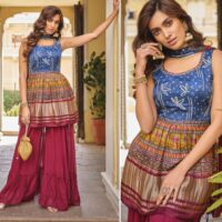 New designer ready made gajji silk bandhani print tops with georgette sharara bottoms