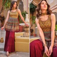 New designer ready made gajji silk bandhani print tops with georgette sharara bottoms