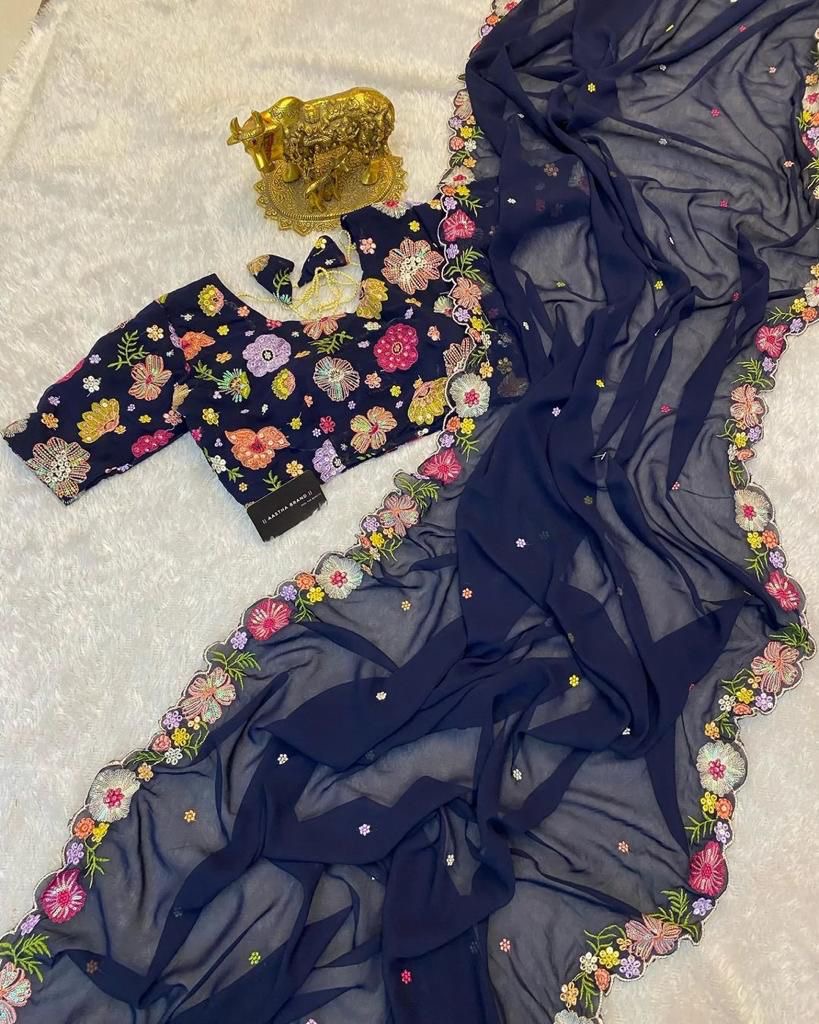 New Bollywood wardrobe team georgette saree with sequin and multi thread work