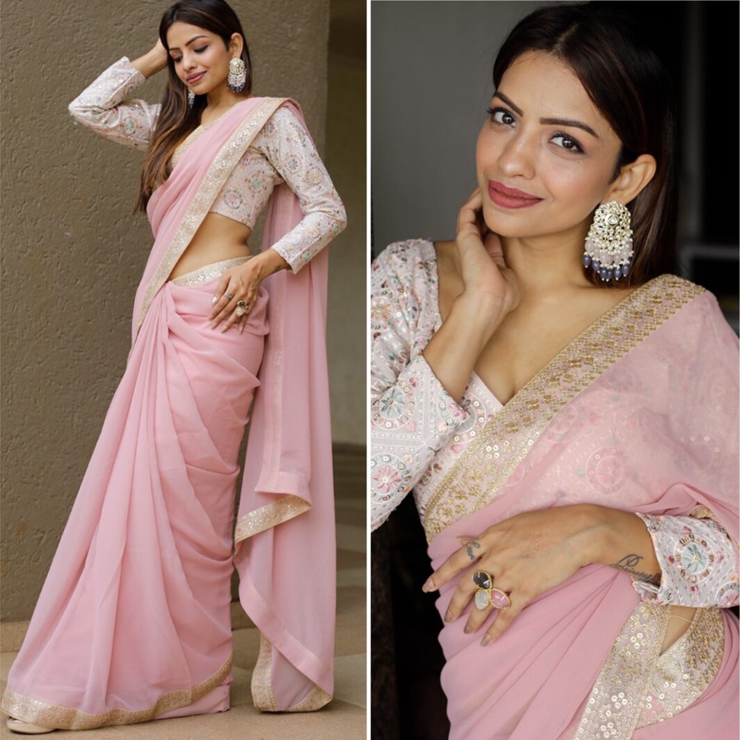 New designer georgette saree with thread and sequin embroidery and blouse comes unstitched