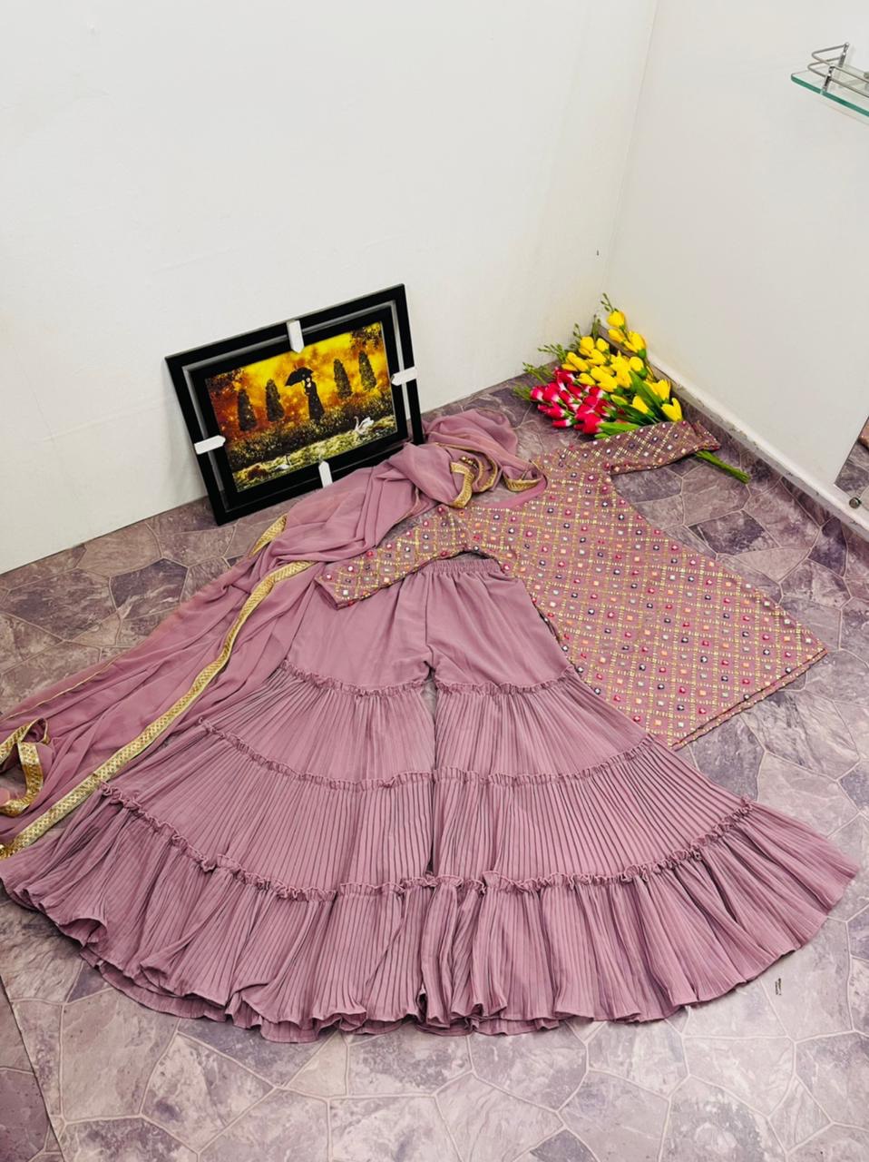 New Bollywood wardrobe team georgette ready made suit with sequin and foil mirror embroidery