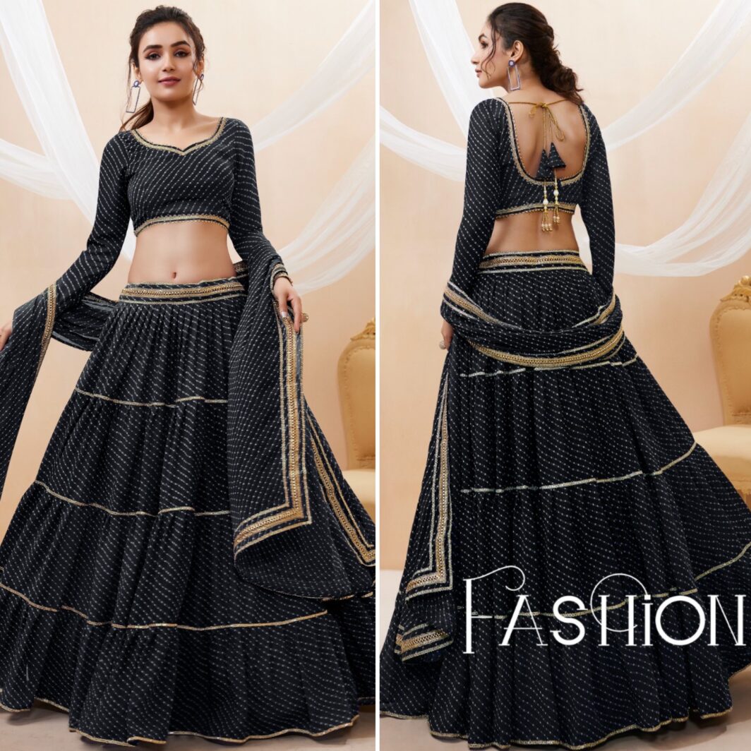 New designer georgette lehenga with leheriya print and lace work