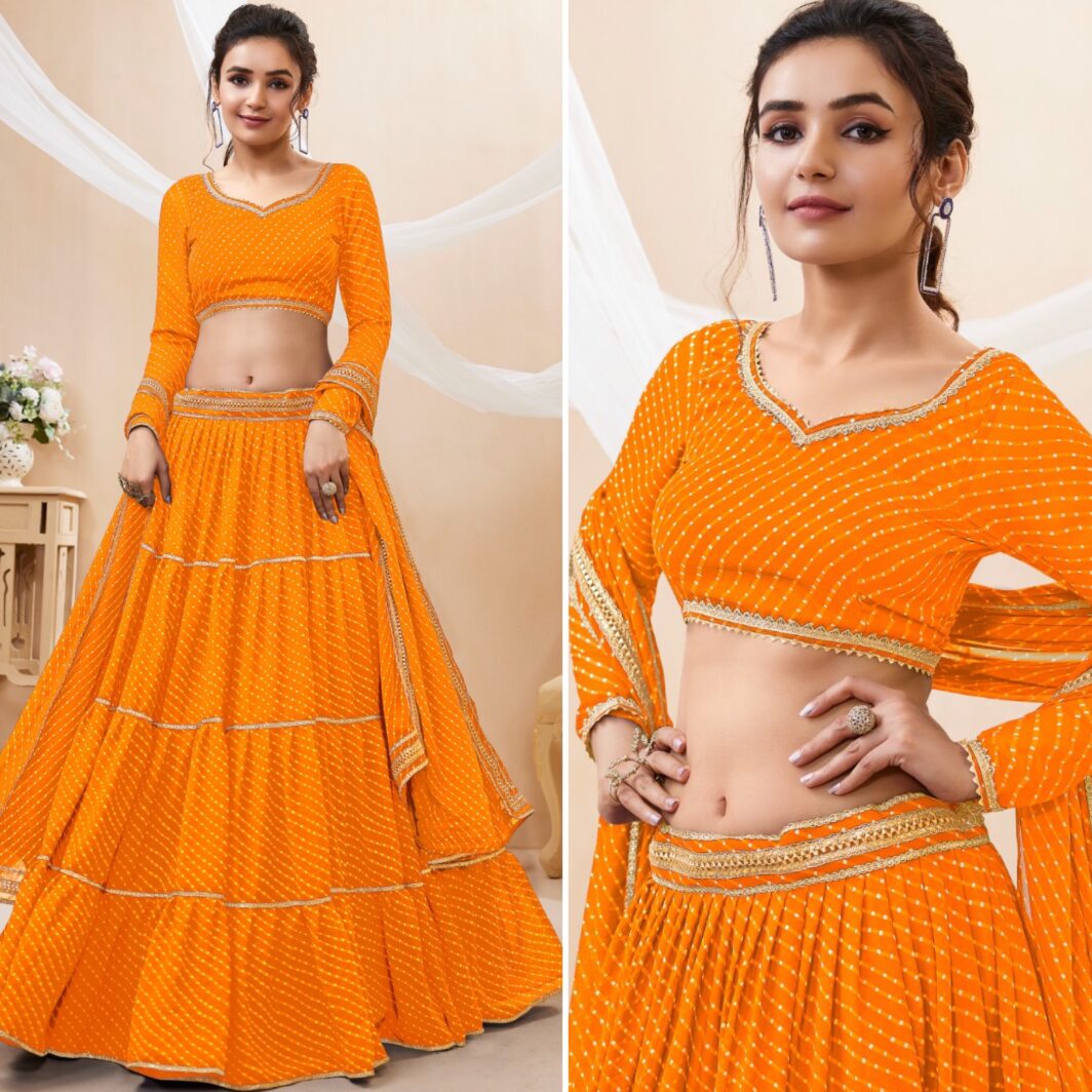 New designer georgette lehenga with leheriya print and lace work