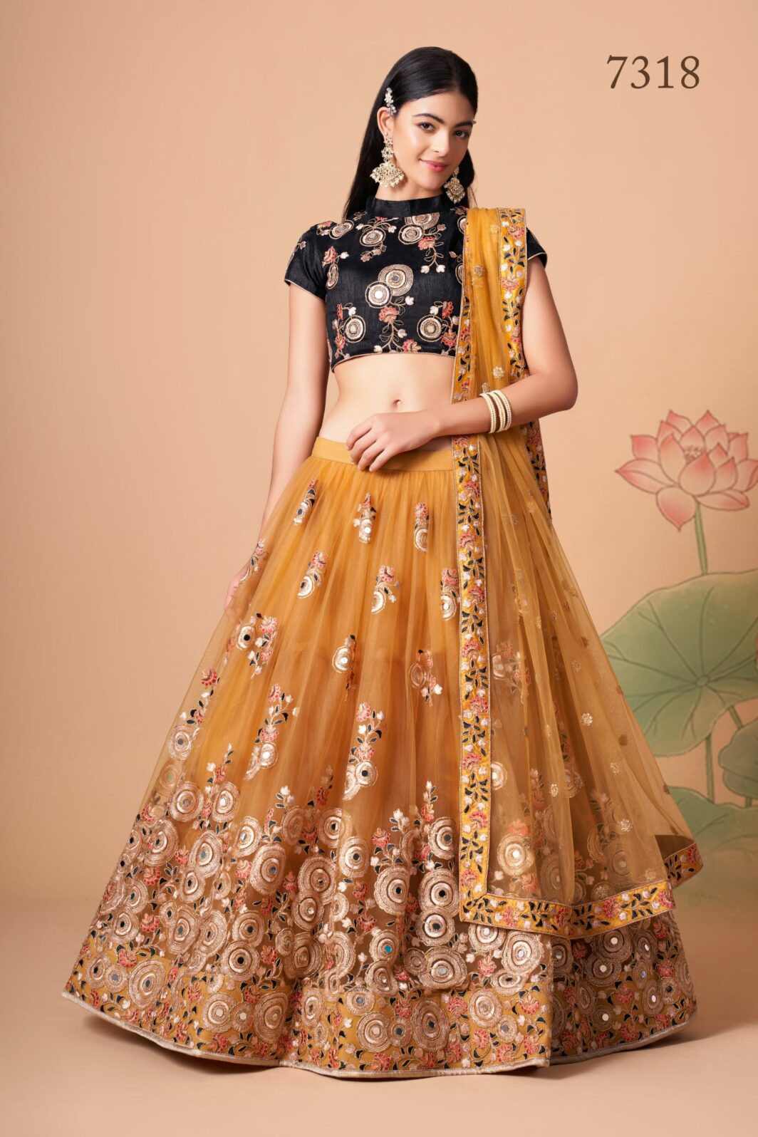 New designer soft net lehenga with thread, zari, dori, sequin and mirror work