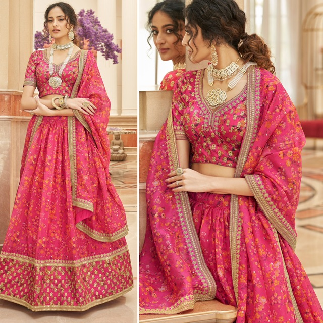 New designer art silk lehenga with Thread, Zari, Dori and Sequins Embroidery Work
