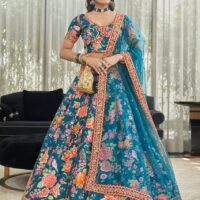 New designer art silk digital printed lehenga with dori, sequins and stone work