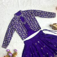 New kids ready made chin on silk lehenga with sequin embroidery work