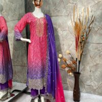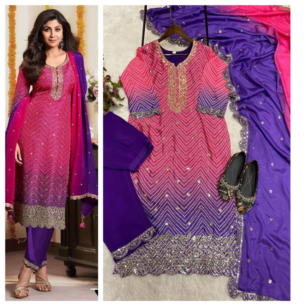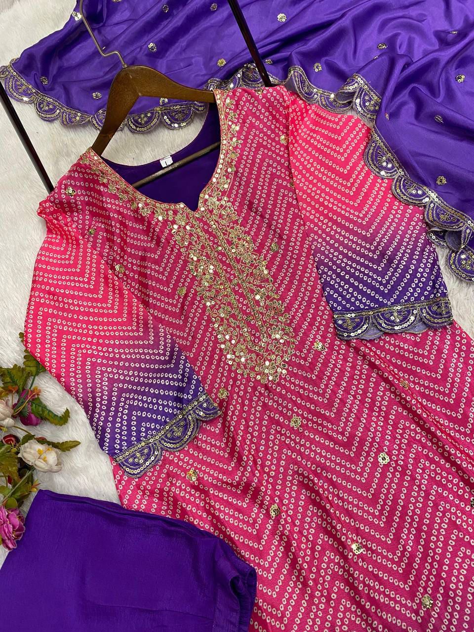 New Bollywood wardrobe team ready made chinon silk bandhani suit with sequin embroidery work