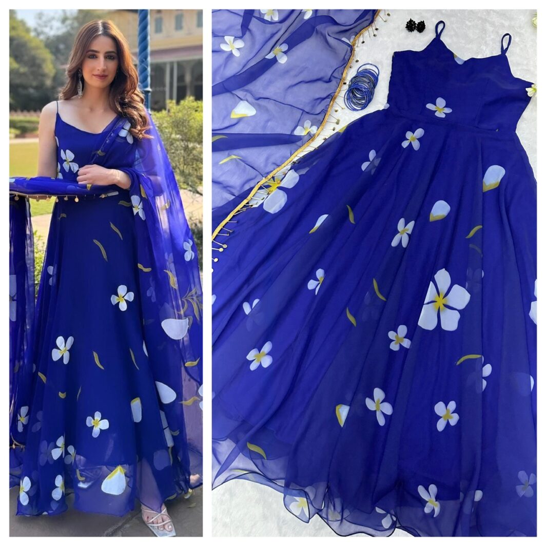 New Bollywood wardrobe team ready made organza silk digital printed anarkali style gown