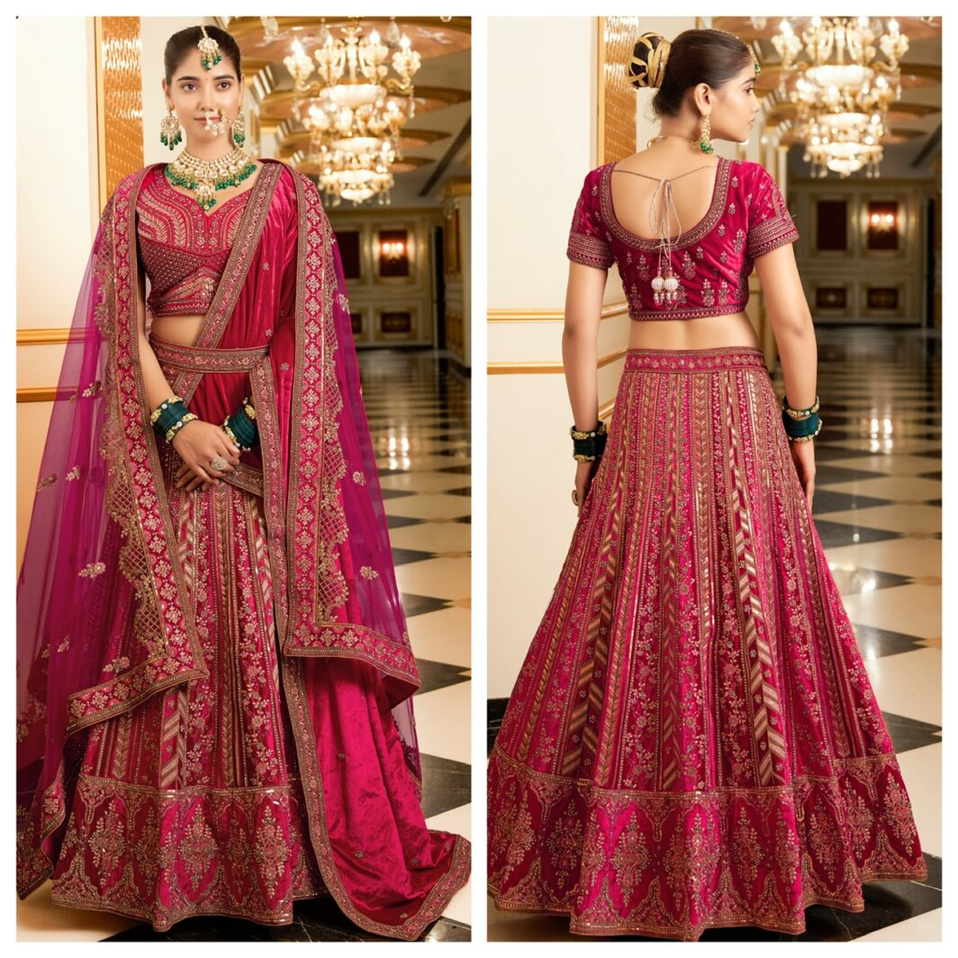 New premium bridal velvet lehenga with zarkan kasab coding 10 kali lehenga