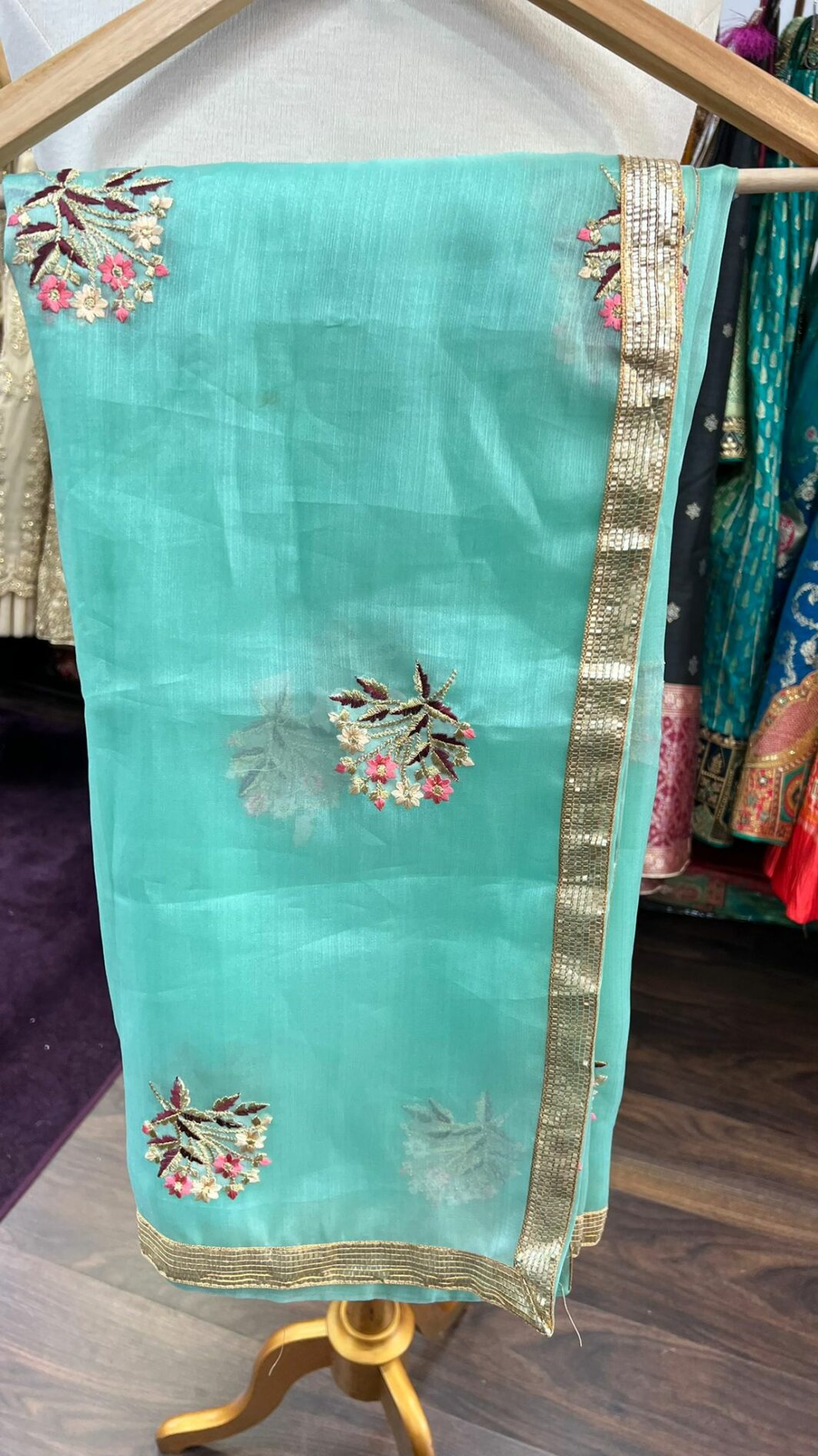 New organza silk digital with thread embroidery dupatta