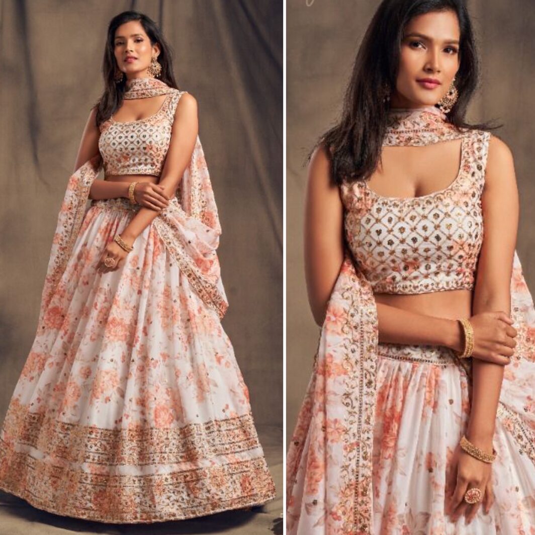 New designer soft organza silk digital printed lehenga with sequins embroidery – skirt comes semi stitched max 42 inches and blouse unstitched with 16 inches arms material