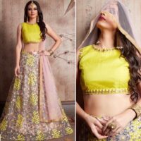 New designer soft net lehenga with thread embroidery work – skirt comes semi stitched max 42 inches waist and blouse unstitched