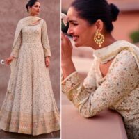 New designer free size stitched georgette gown with embroidery work (dupatta included)