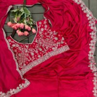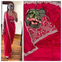 New Bollywood wardrobe team chinon ready to wear saree with coding embroidery work