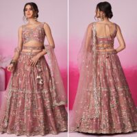 New designer chinnon lehenga with sequin, thread and mirror embroidery work