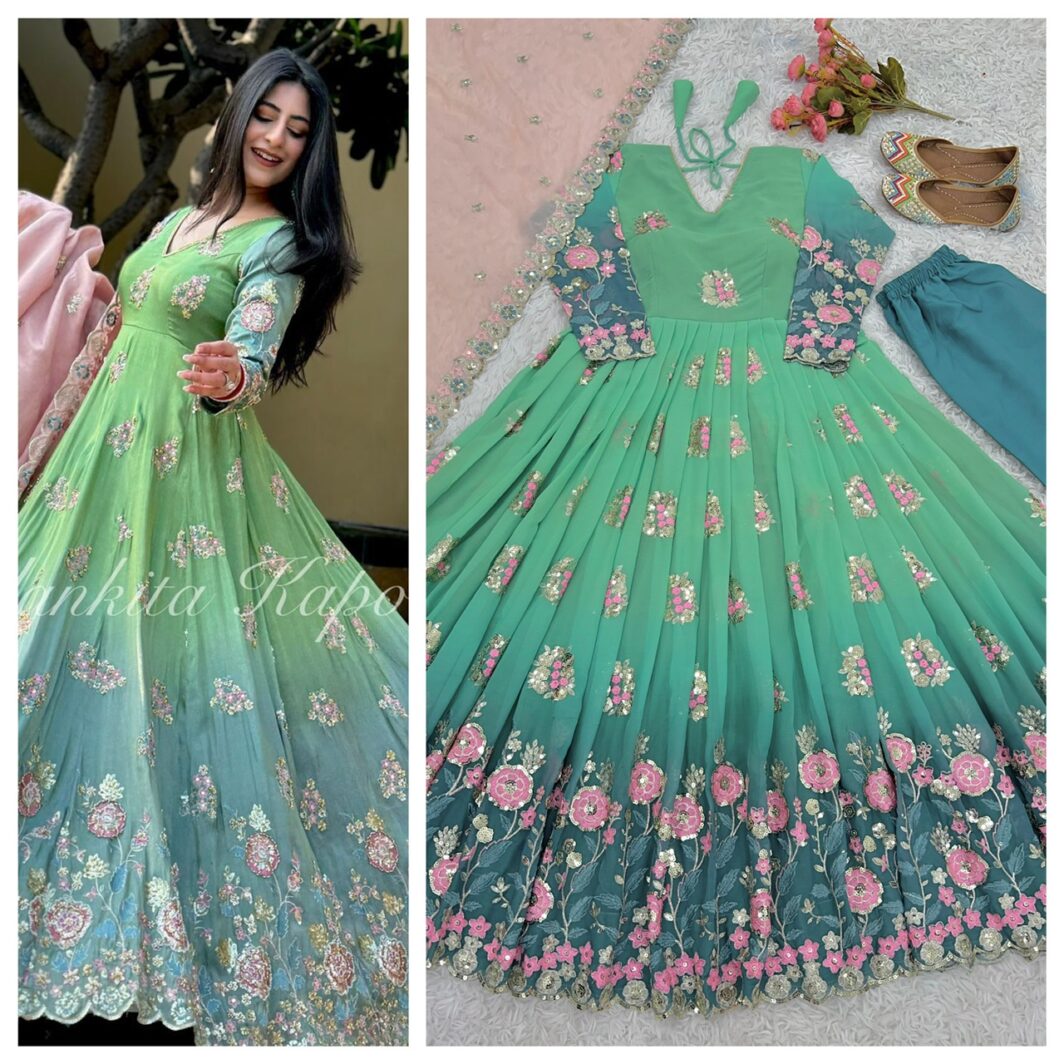 New Bollywood wardrobe team ready made georgette gown with sequin embroidery work