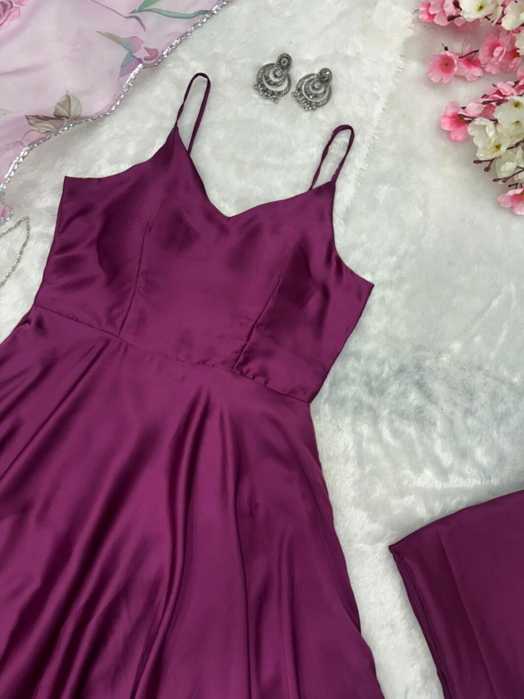 WINE SATIN SILK READY MADE ANARKALI SUIT PREORDER SPECIAL SCA