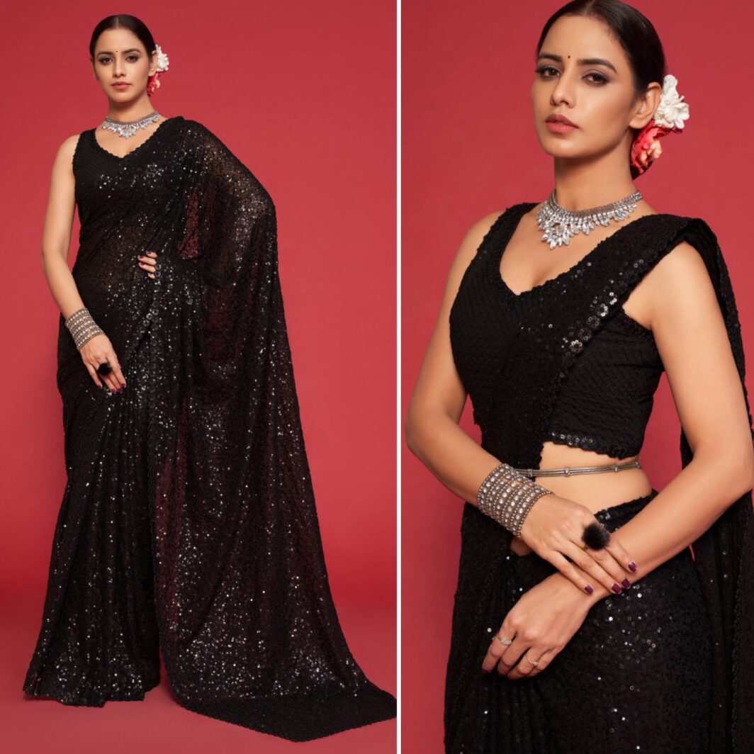 New premium range georgette sequin saree with unstitched blouse