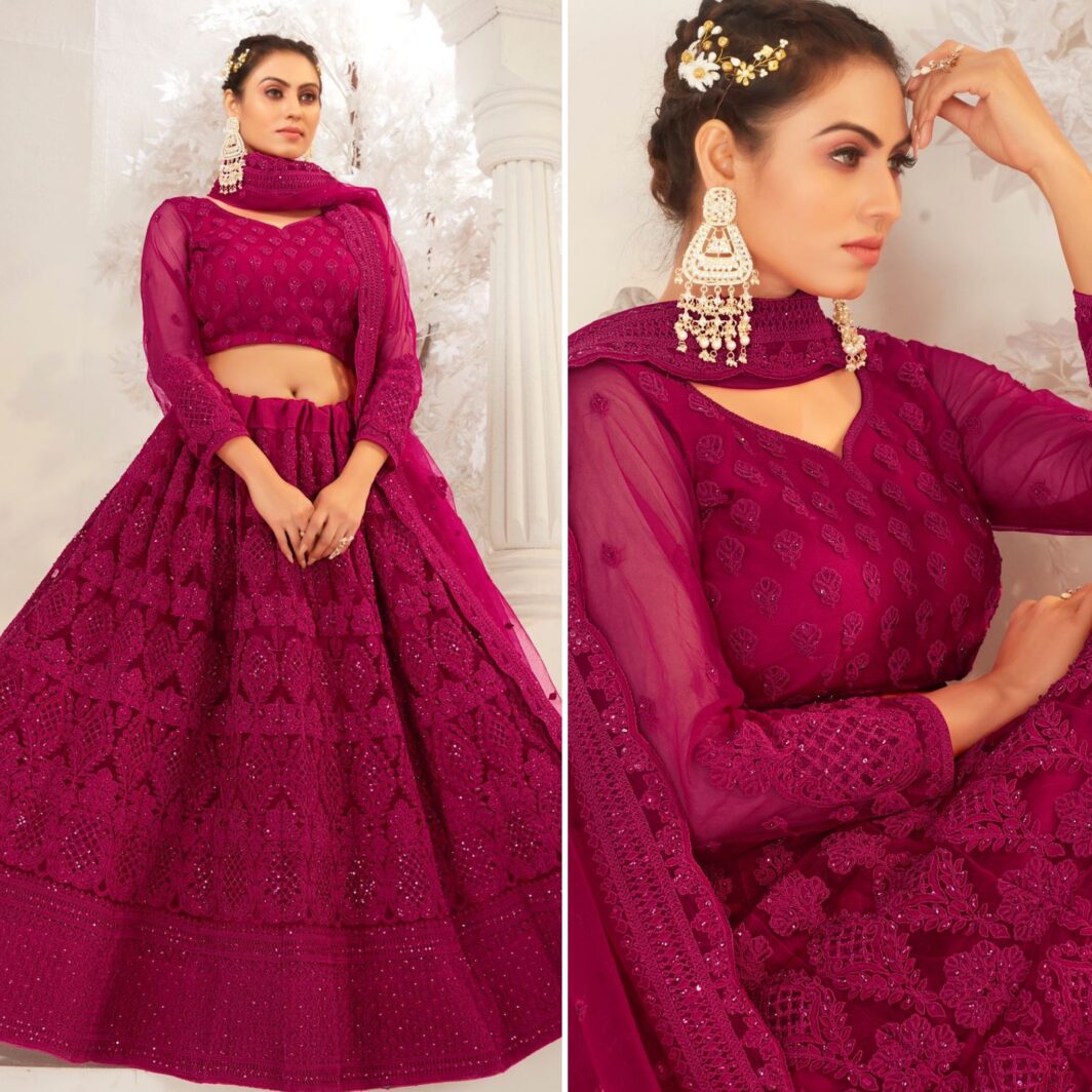 New designer premium net lehenga with coding and stone embroidery work – skirt semi stitched max 42 inches waist and blouse unstitched