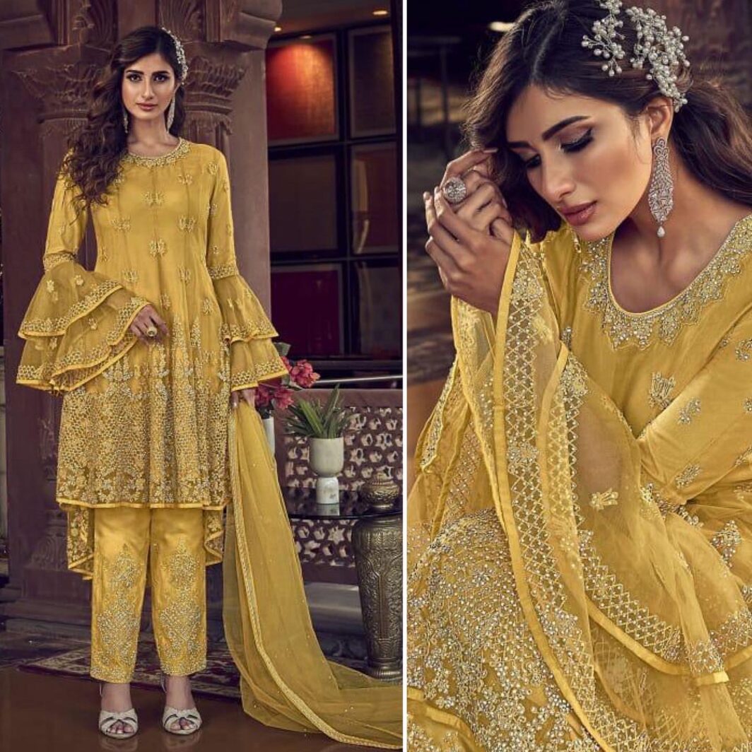 New designer embroidered premium net suit – semi stitched max 44 inches chest