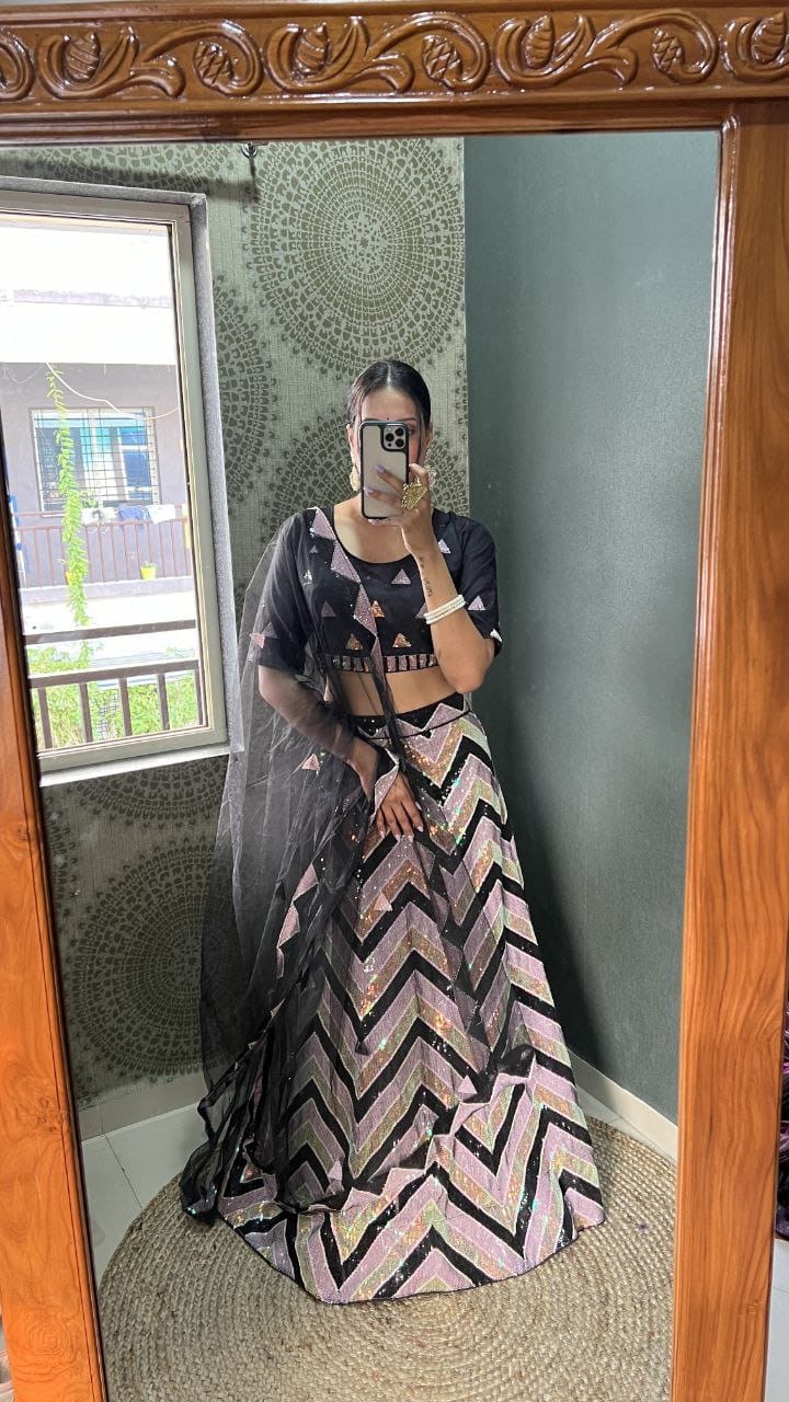 New Bollywood wardrobe team netlehenga with sequin and thread embroidery work