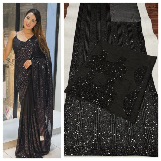 BLACK GEORGETTE SEQUIN SAREE PREORDER SPECIAL DF3420