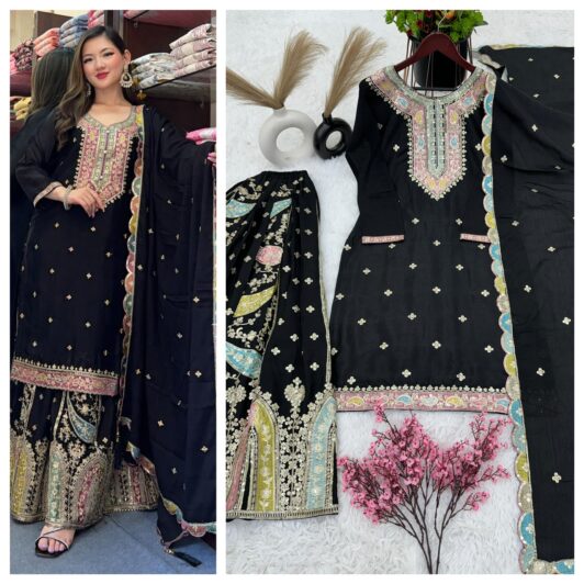BLACK CHINON SILK READY MADE SEQUIN SHARARA SUIT PREORDER SPECIAL ZF377B